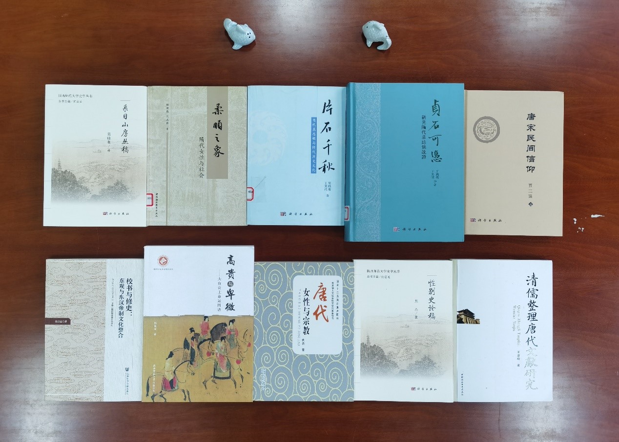 黄永年《唐代史事考释》《文史探微》《树新义室笔谈》《文史存稿》《六至九世纪中国政治史》《学苑与书林》《唐史十二讲》;贾二强《唐宋民间信仰》;周晓薇《柔顺之象:隋代女性与社会》《片石千秋:隋代墓志铭与隋代历史与文化》《贞石可凭:新见隋代墓志铭疏证》;黄寿成《<隋经籍志考证>及其王颂蔚批校研究》《嬗变、趋同及比较——北朝后期民族认同及区域文化研究》;焦杰《性别视角下的〈易〉〈礼〉〈诗〉妇女观研究》《唐代女性与宗教》《身份与权利:唐代士族家庭妇女研究》;王雪玲《清儒整理唐代文献研究》《清代学者名儒与陕西地方志的修纂》;郭海文《大唐公主命运图谱》;苏小华《南北朝佞佛与废教事初探》;张宗品《史记的写本时代——公元十世纪前〈史记〉的传写与阅读》《校书与修史:东观与帝制国家文化整合研究》;骆扬《历史记载中的张力 —— 比较视野下的〈春秋〉经传及早期史学与思想研究》。
