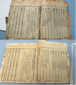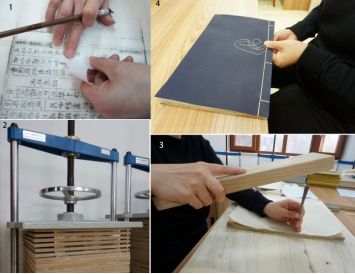 古籍修复过程中的修补书叶、压实、打眼、订线