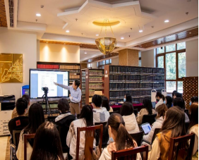 艺术学院的陈均副教授利用馆藏古文献资源在古籍阅览室授课