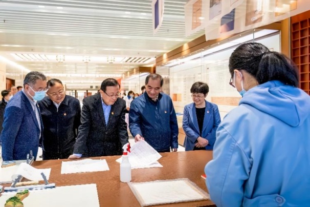 2022年11月4日,北京大学郝平书记、龚旗煌校长等校领导莅临雕版印刷体验活动现场