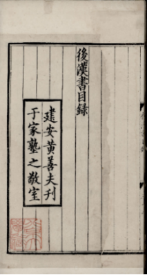 馆藏宋代黄善夫刻本《后汉书》一百二十卷书影